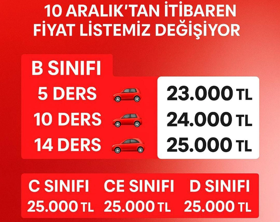 Sürücü belgesi sahibi olmak her geçen gün biraz daha zor ve maliyeti artan hale geliyor. Artan maliyetler, sürücü kurslarını yeni yılda fiyat güncellemesine yönlendirirken, birçok kişi zamlar yürürlüğe girmeden önce kayıt yaptırmayı tercih ediyor. Ben bu davranışı gayet yerinde bulmaktayım.