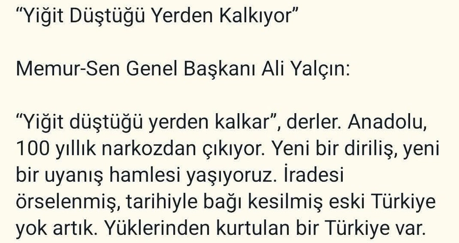 Birleşik Kamu-İş Adana İl Başkanı Hatice Hazar, Memur-Sen Genel Başkanı Ali Yalçın'ın 'Yiğit düştüğü yerden kalkıyor' söylemine karşılık açıklamalarda bulundu.