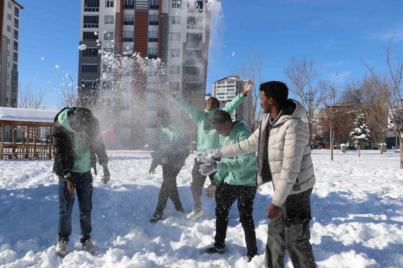 Sivas Uluslararası Şehit Münir Murat Ertekin Anadolu İmam Hatip Lisesi’nde eğitim gören birçok Afrikalı öğrenci, hayatlarında ilk kez karla tanıştı. Okulda eğitim gören 70 yabancı öğrencinin büyük bir bölümü Afrika kıtasından geliyor. Alışık olmadıkları dondurucu soğuğa rağmen, kar tatilinde ve teneffüslerde okul bahçesine koşan öğrenciler, kardan adam yapıp kartopu oynayarak doyasıya eğlendi. Şaşkınlık ve mutluluğu aynı anda yaşadılar.