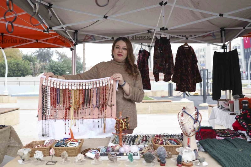 El emeği takı ürünleri satan Sinem Arslan da hemşire olduğunu ancak atanamadığı için bu alanda üretime yöneldiğini belirtti. Arslan, "Doğal taşlardan tespih, bileklik ve kolyeler yapıyorum. Belediyemizin sunduğu bu imkân sayesinde haftada bir gün de olsa eve katkı sağlayabiliyorum" ifadelerini kullandı.