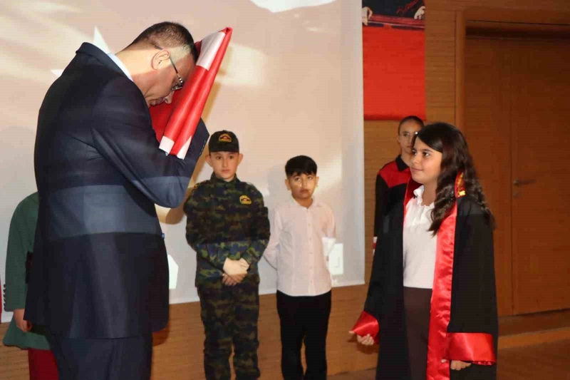 Sakarya’nın Kaynarca ilçesinde, Kaynarca Cumhuriyet Başsavcılığı tarafından düzenlenen ay yıldız temalı etkinlik, Sakarya Cumhuriyet Başsavcısı Hasan Uğurlu’nun bir öğrenciye bayrağı teslim etmesiyle başladı. Bu tören, programa derin bir anlam kattı.