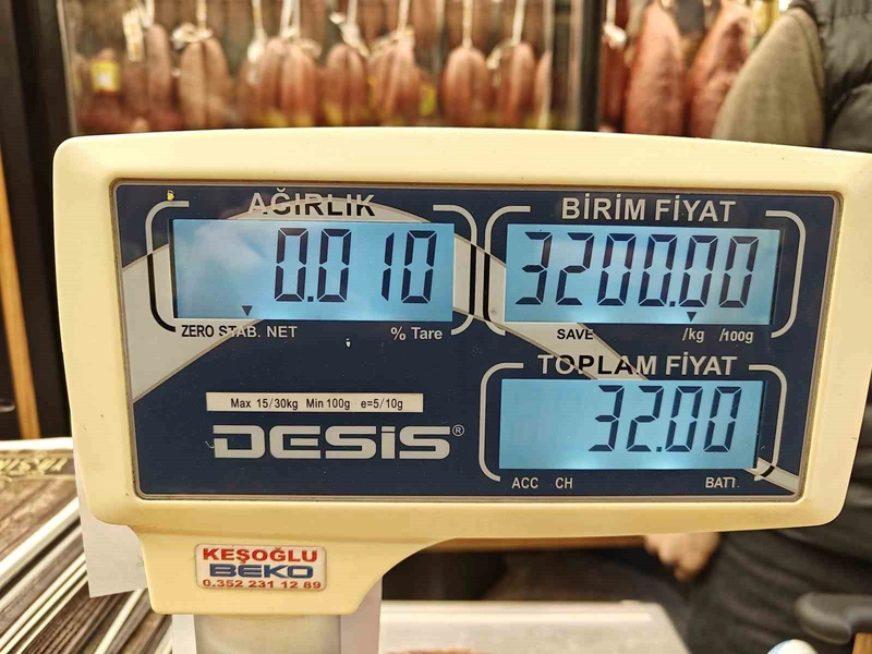 Güzel, pastırma fiyatının hayvanın hangi bölgesinden çıktığına göre değiştiğini açıkladı. 2 bin TL'ye satılan pastırmanın bir dilimi yaklaşık 5 gram gelirken, dilim fiyatı 10 TL'ye tekabül ediyor. Kilosu 3 bin 200 TL olan en iyi pastırmanın bir dilimi ise 10 gram geliyor ve fiyatı 32 TL'yi buluyor.