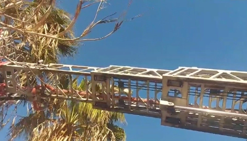 Mersin'in Silifke ilçesinde, günlerdir bir palmiye ağacının tepesinde mahsur kalan bir sokak kedisi, duyarlı vatandaşların ihbarı üzerine itfaiye ekiplerince kurtarıldı. Kedinin, uzatılan merdivenden korkmadan ve sakin bir şekilde aşağı inmesi, olaya tanık olan herkesin yüzünde tebessüm oluşturdu.